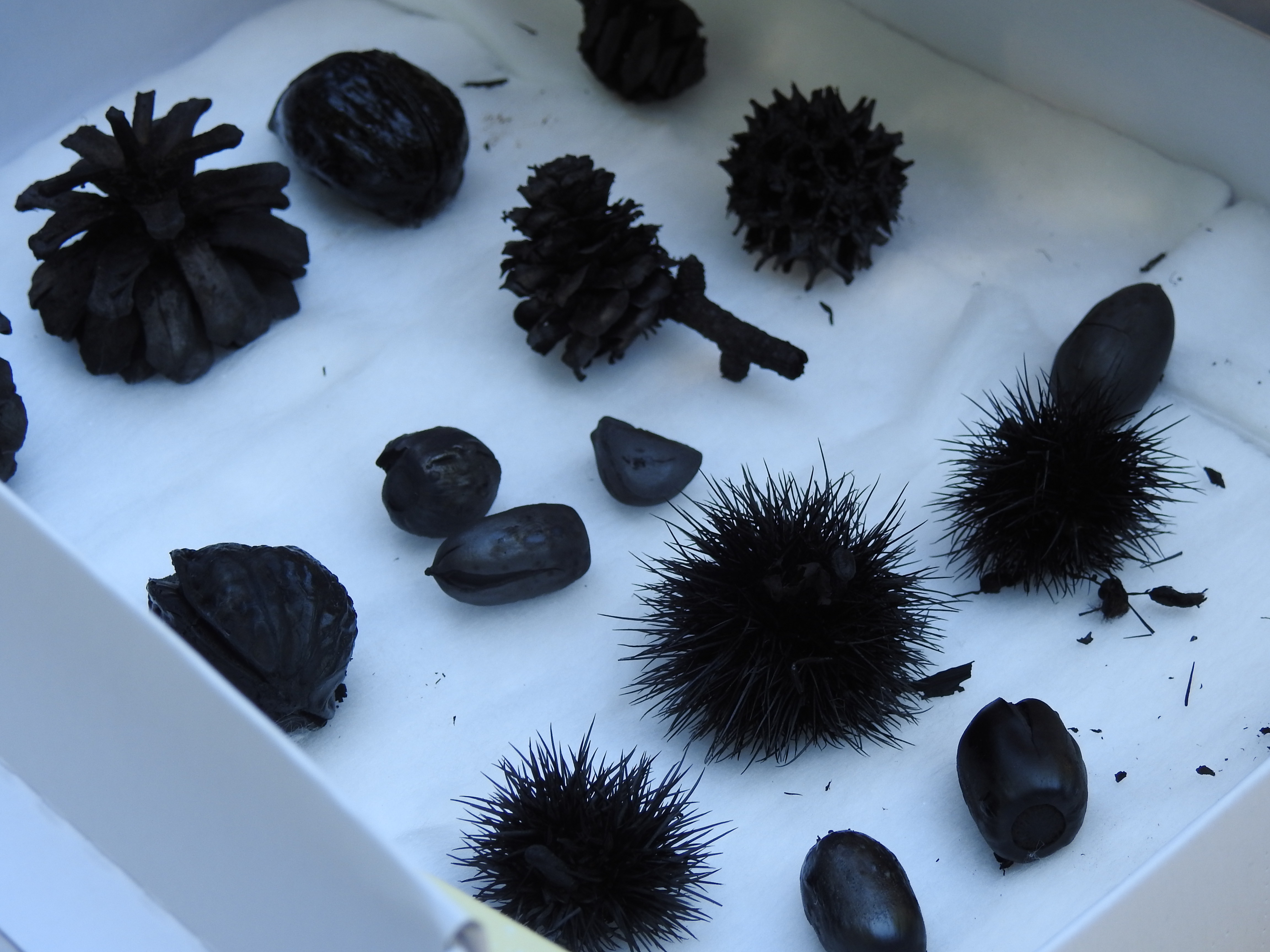 木の実や枝、木の葉などを材料に花炭づくり