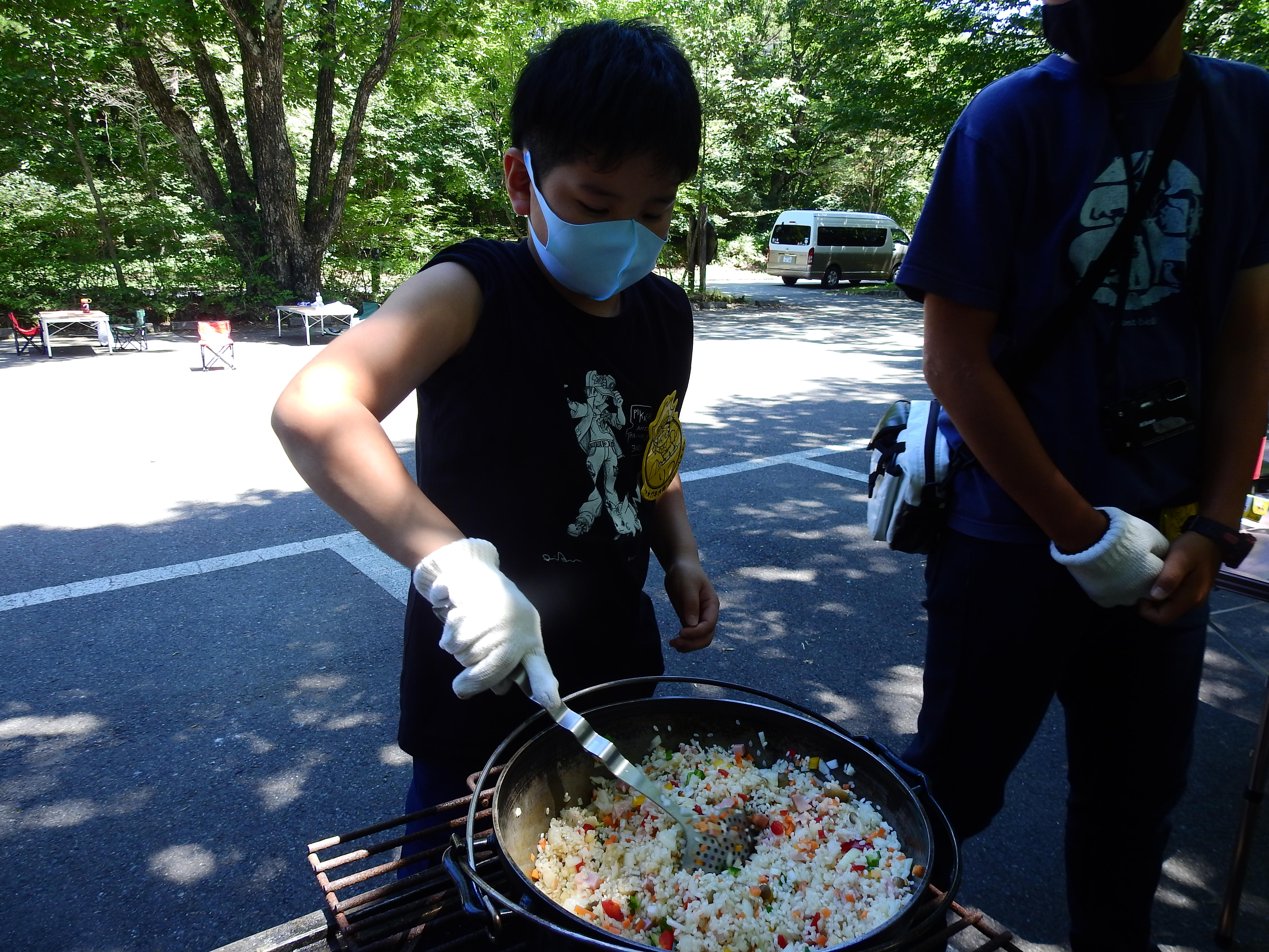野外ですが、マスクをつけて活動しました